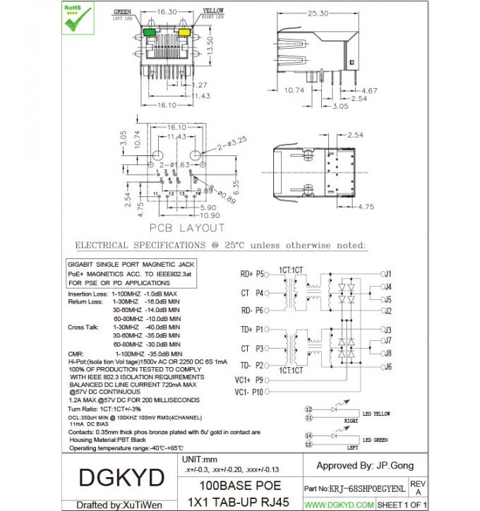 Poe Rj45 Ethernet Connector Side Entry Tab Up 100mb Rj45