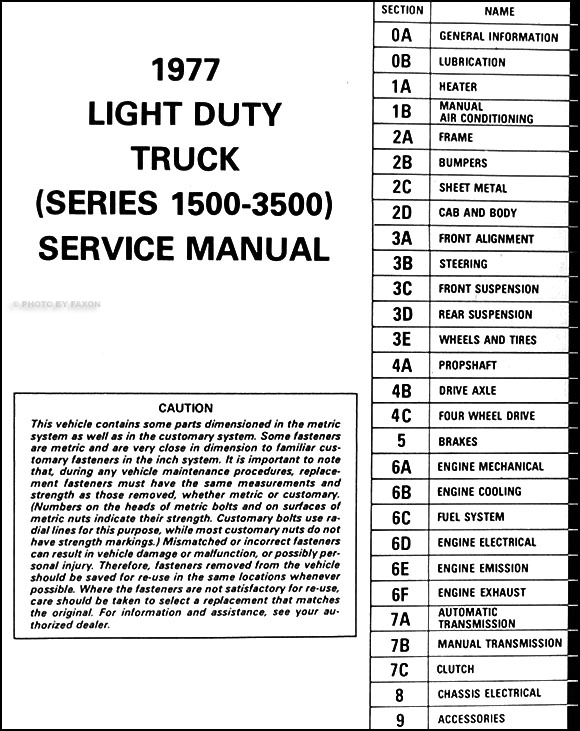 1982 Gmc Truck Shop Manual Sierra Van Jimmy Suburban
