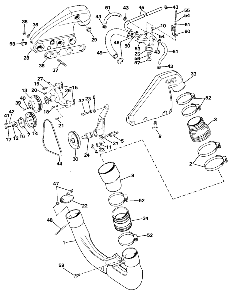 Omc Stern Drive Exhaust U0026 Cooling Parts For 1987 4 3l