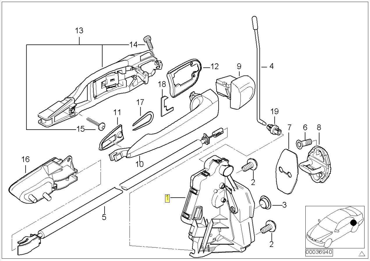 Bmw E46 Door Handle Cable Diagram 330 323 325 Sedan