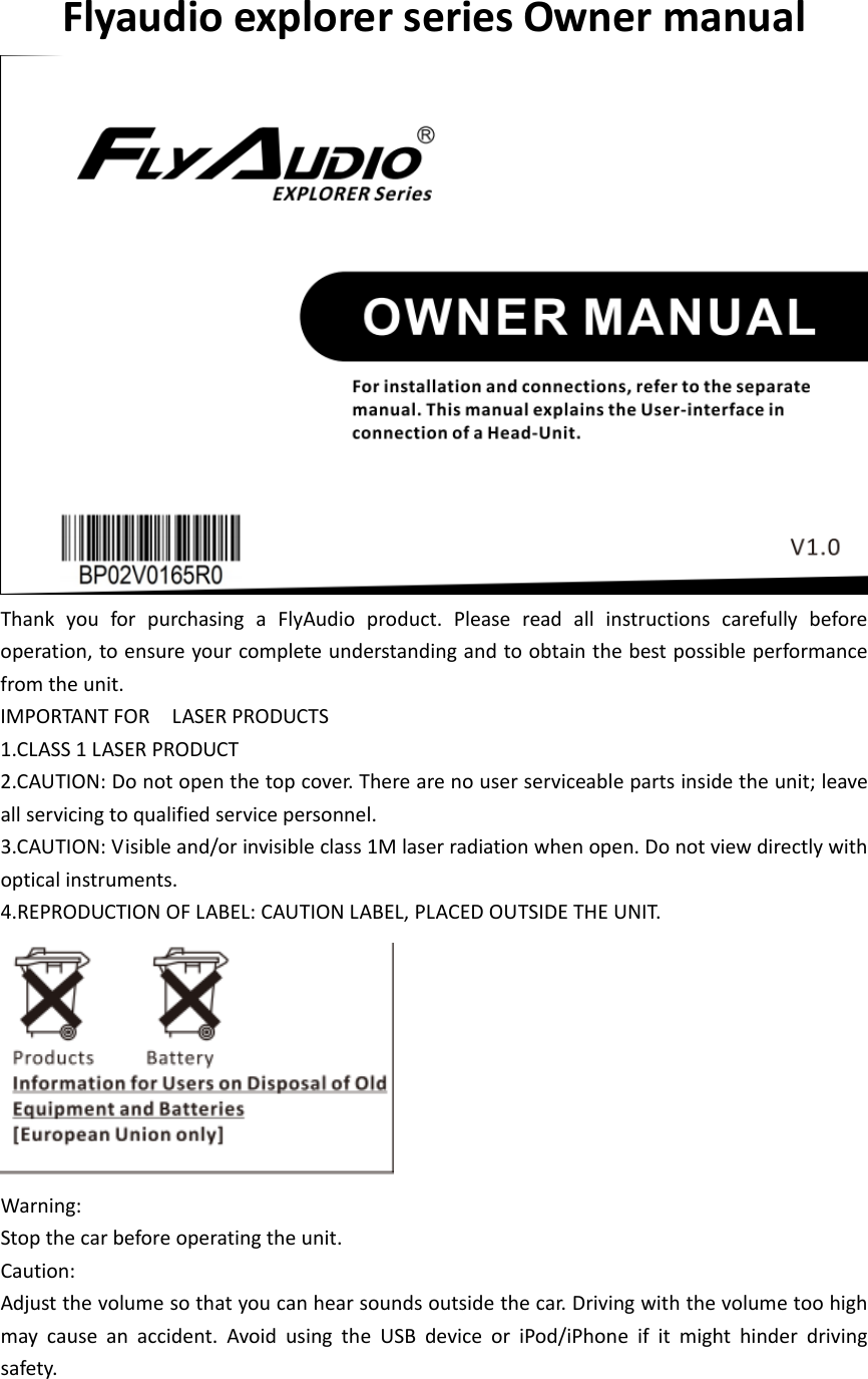 Flyaudio 66132h01 Car Navigation System With Entertainment User Manual