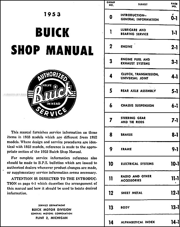 1953 Buick Repair Shop Manual Reprint Supplement