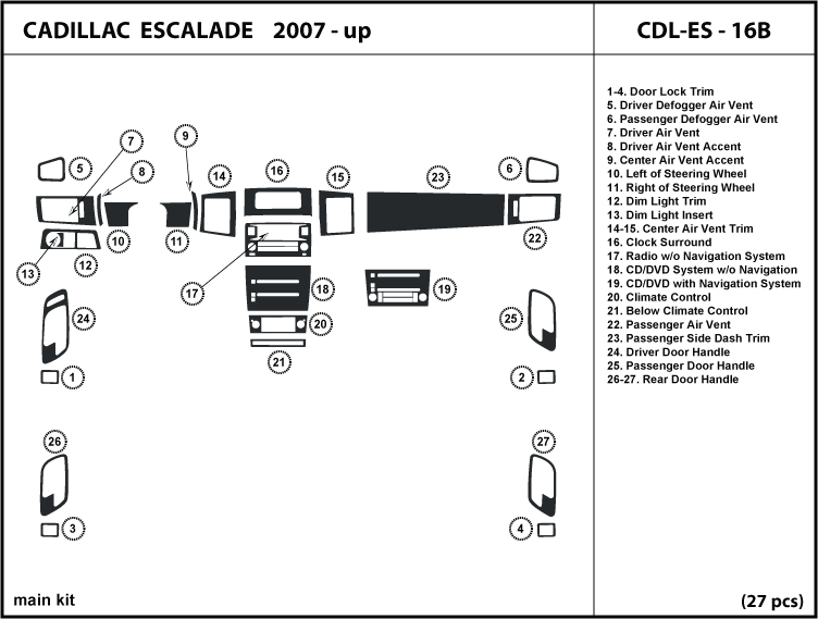 Cadillac Escalade 2002 Dash Trim Kit Basic Kit 27 Pcs U2013 Interior Dash Kit