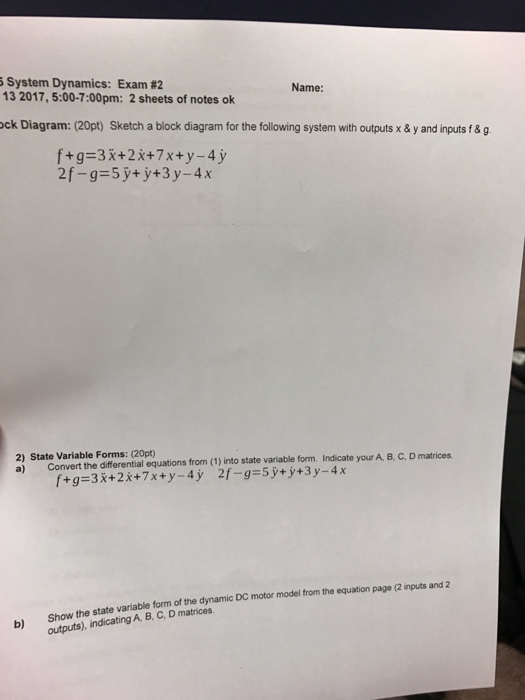Solved Sketch A Block Diagram For The Following System Wi