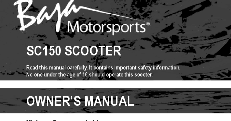 Sc150 Scooter Operator U2019s Manual