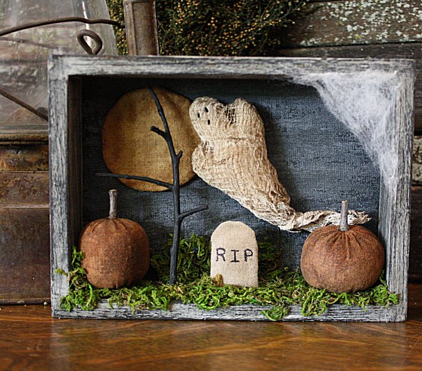 Rock River Stitches Primitive Halloween Shadow Box