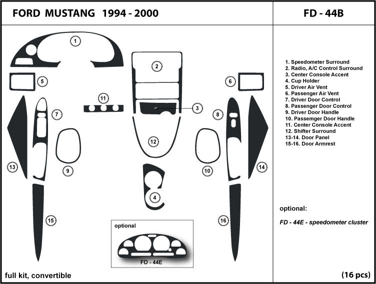 Dash Kit Trim For Ford Mustang Convertible 1994