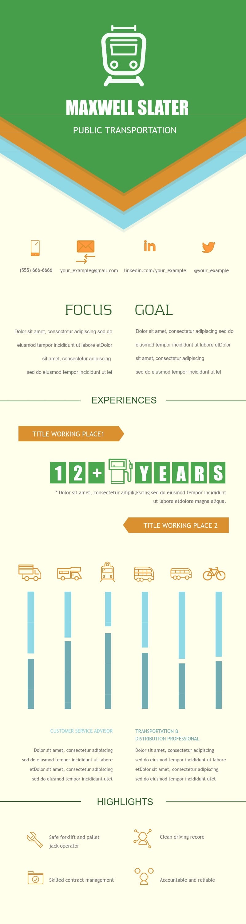 Public Transportation Resume Color Template