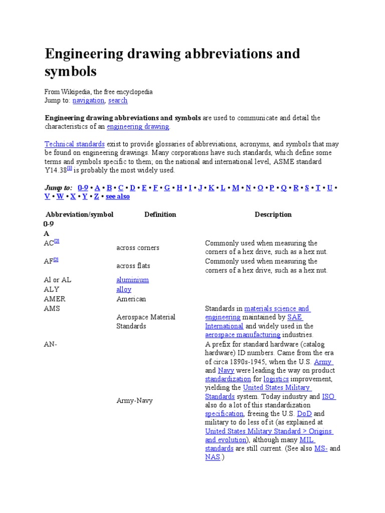 Engineering Drawing Abbreviations And Symbols