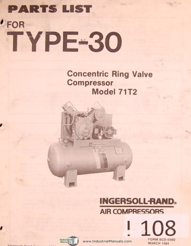 Ingersoll Rand Model 10t Type 30 Compressor Parts List