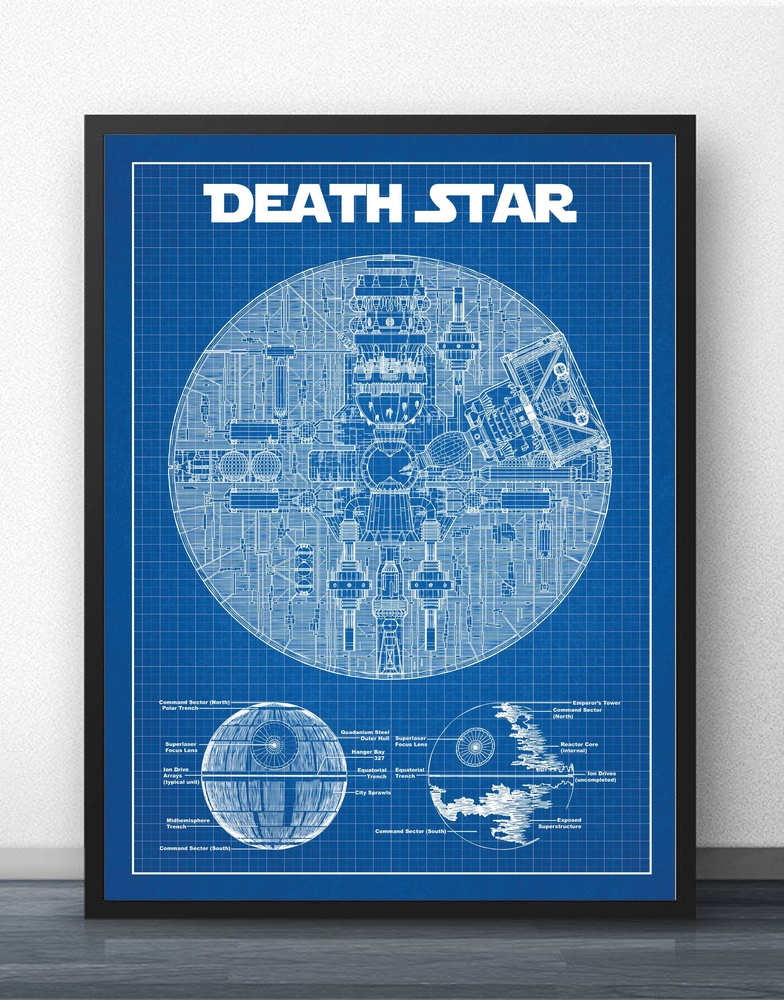 Star Wars Death Star Blueprint Wall Art Paint Prints Canvas Art Poster Oil Paintings For Living