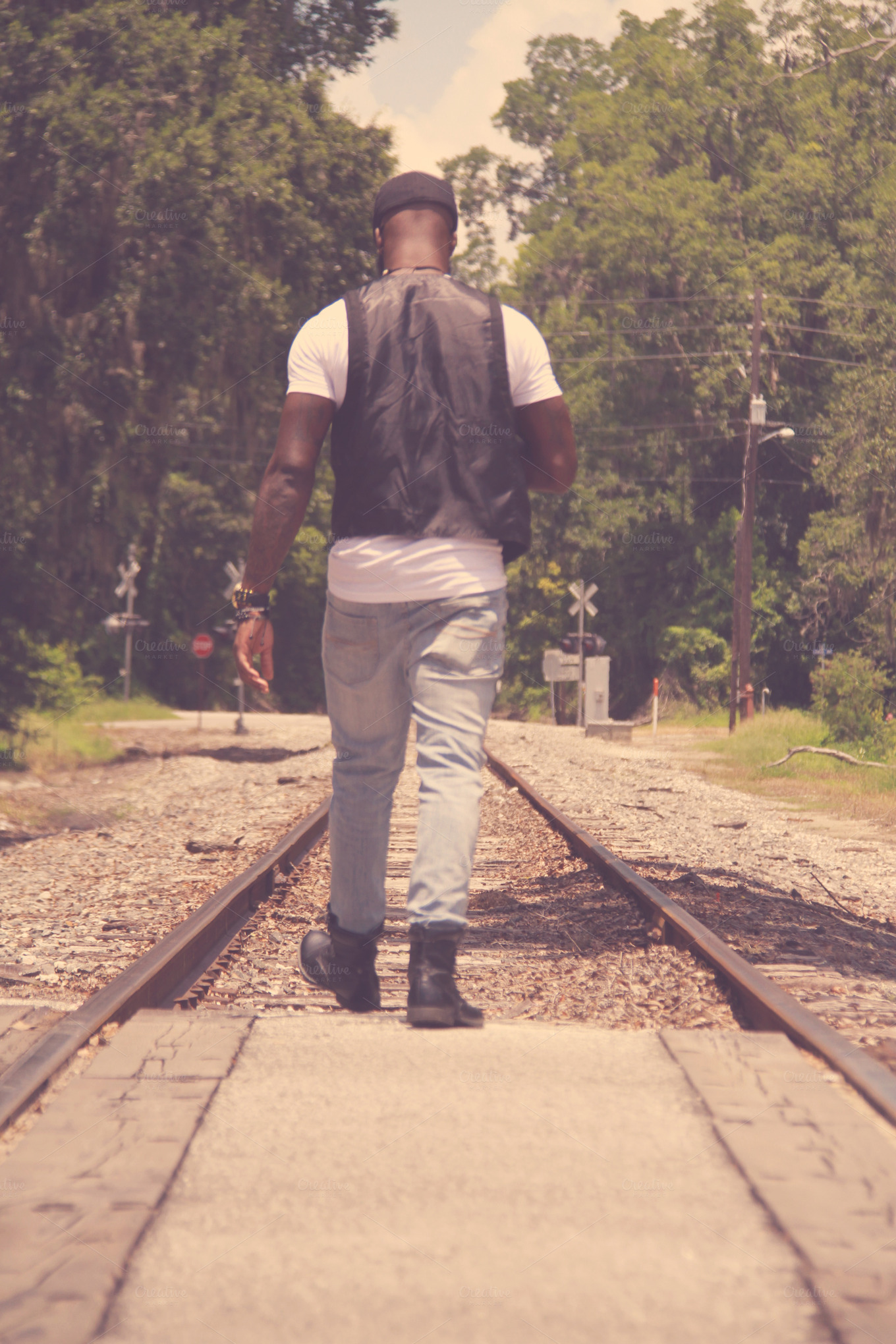 Man Walking On Railroad Tracks
