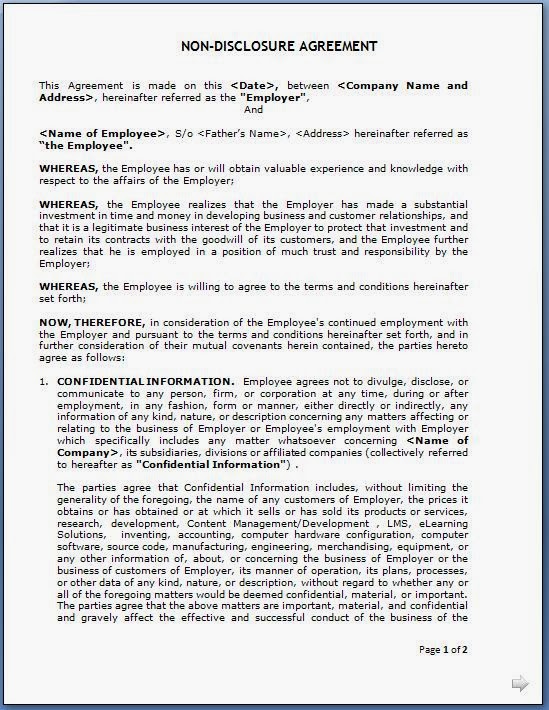 Non Disclosure Agreement For Employees Format