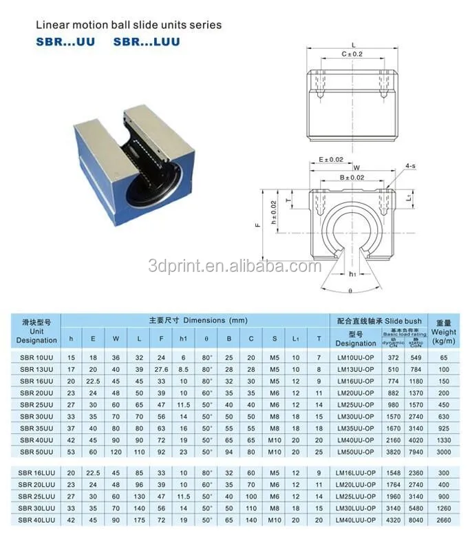 Sbr12uu 12mm Specs Open Linear Bearing Diminsions Blocks