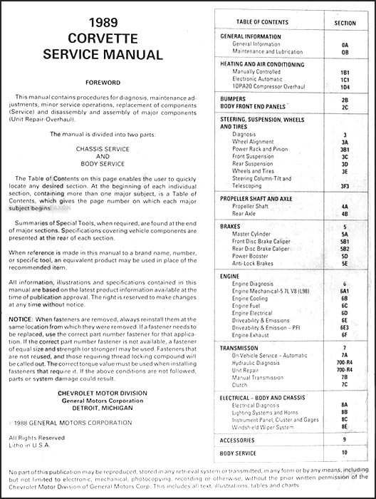 1989 Corvette Repair Shop Manual Original