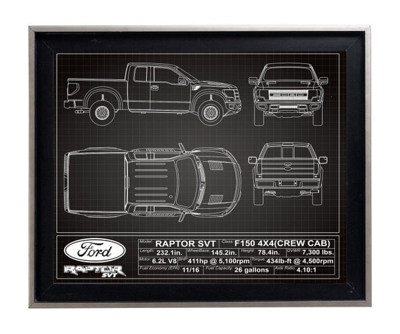 Ford F150 Raptor Svt Blueprint Poster Print Matte F