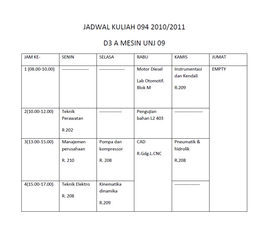 Chumol Blogspot Com Jadwal Kuliah 094 2010 2011 D3 A