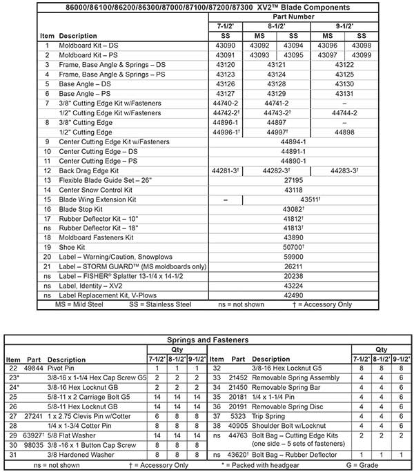 Fisher Snow Plow Xv2 Blade Parts