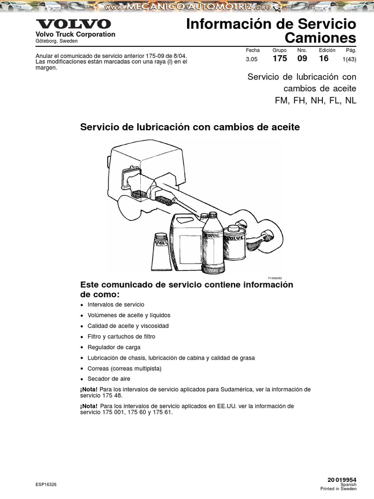 Manual Camiones Volvo Servicio Lubricacion Cambios Aceite
