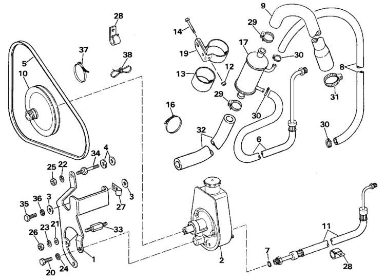 Omc Stern Drive Power Steering Pump Parts For 1989 5 7l