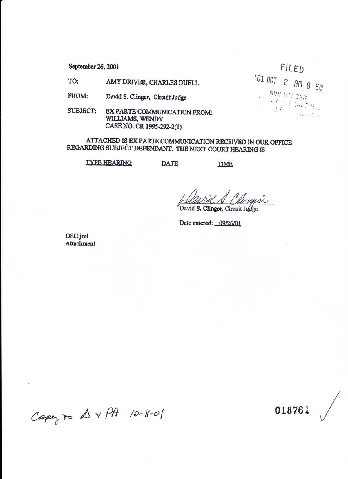 Wendy Ellis Williams Court Letter